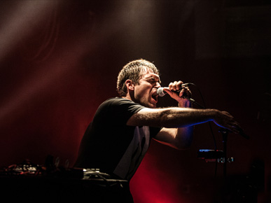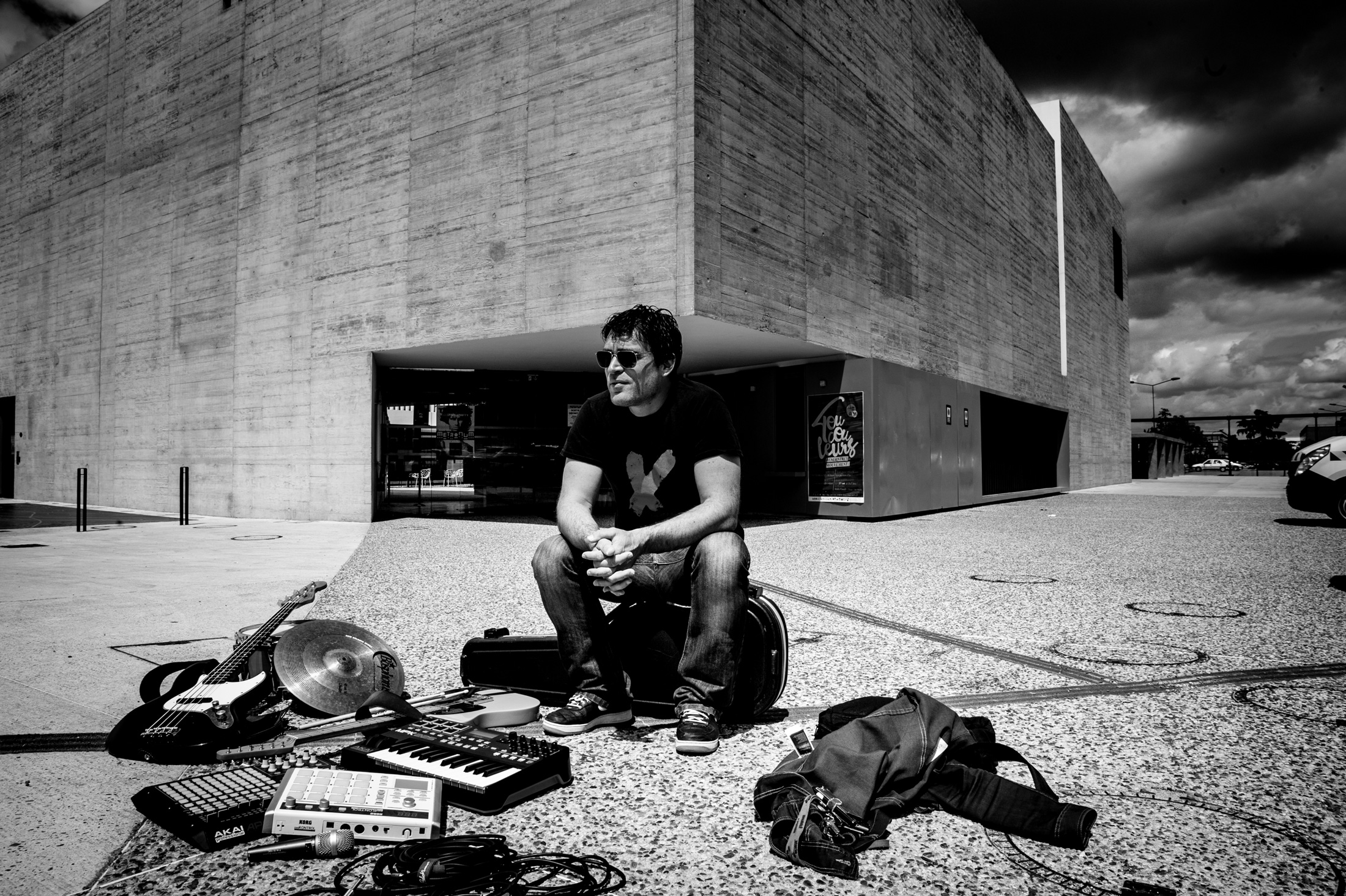 Sur scène, c’est en mode « one man band » electro-rock qu’il officie, alternant guitare, batterie, scratch, chant, machines avec une facilité déconcertante et une énergie hors norme.